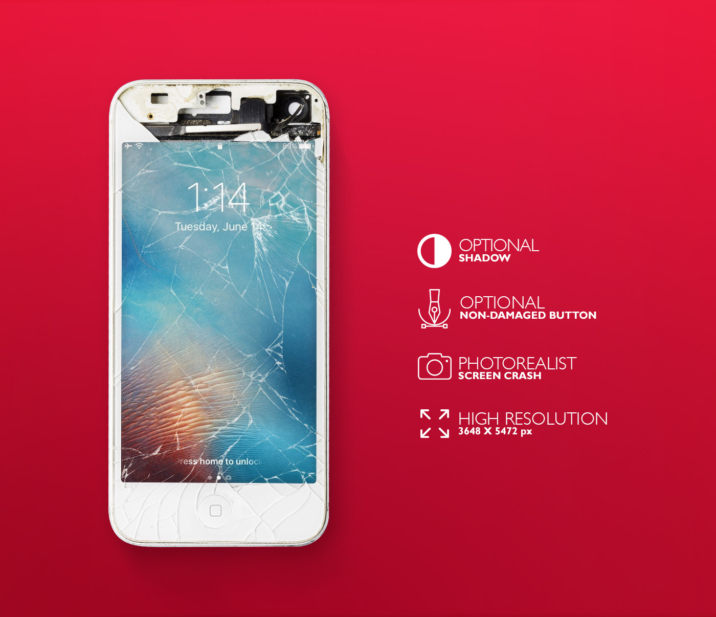 Necesitaba un Mockup que me brindara la sensación de cristal roto en un iPhone precisamente, tras buscar y no encontrar me vi en la obligación de crearlo a partir de una imagen de alta calidad. Espero les sea de utilidad en sus trabajos.